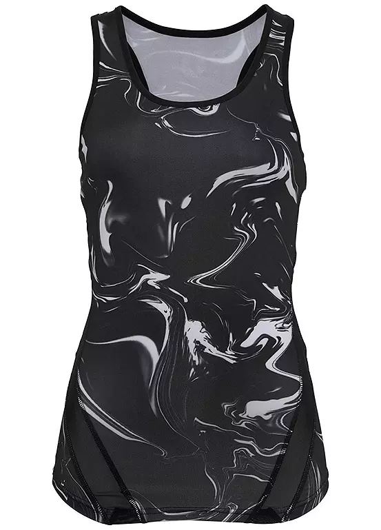 Made from comfortable stretch material with an integrated bustier for added support, this vest top is perfect for sporting activities. With breathable functional material, mesh inserts, and a racer back.