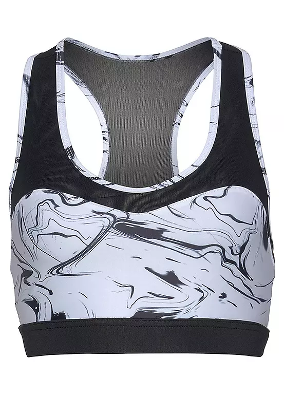 Feel comfortable during in your next workout session. This sports top is made from a breathable stretchy material with quick-dry membrane. In an on-trend short, cropped style, with mesh inserts on the front and racer style back.