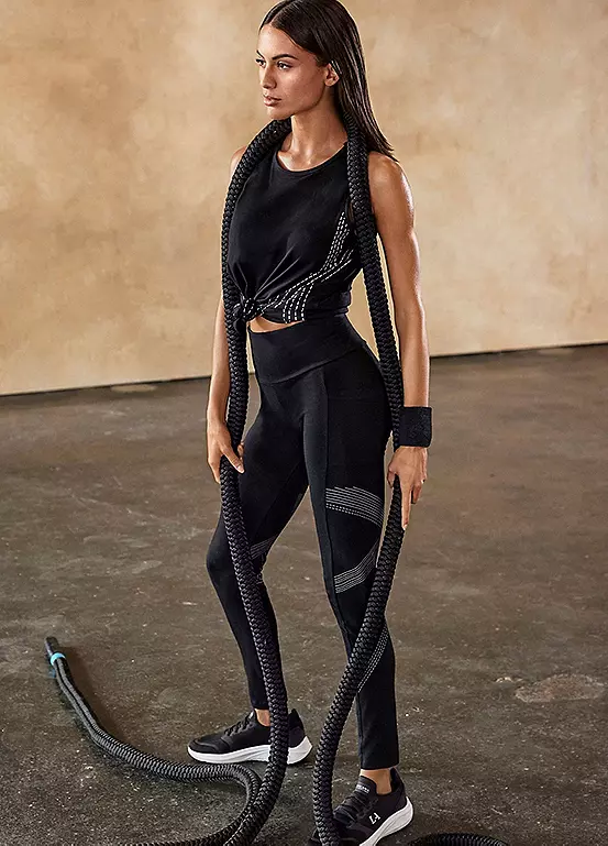 Tank top by Lascana Active. With reflective print on the front. Cut a little longer. With a round neckline. Good to combine. Fine, soft cotton quality. Round neck. Logo lettering. Perfect for fitness, gymnastics, running. 95% Cotton, 5% Elastane.