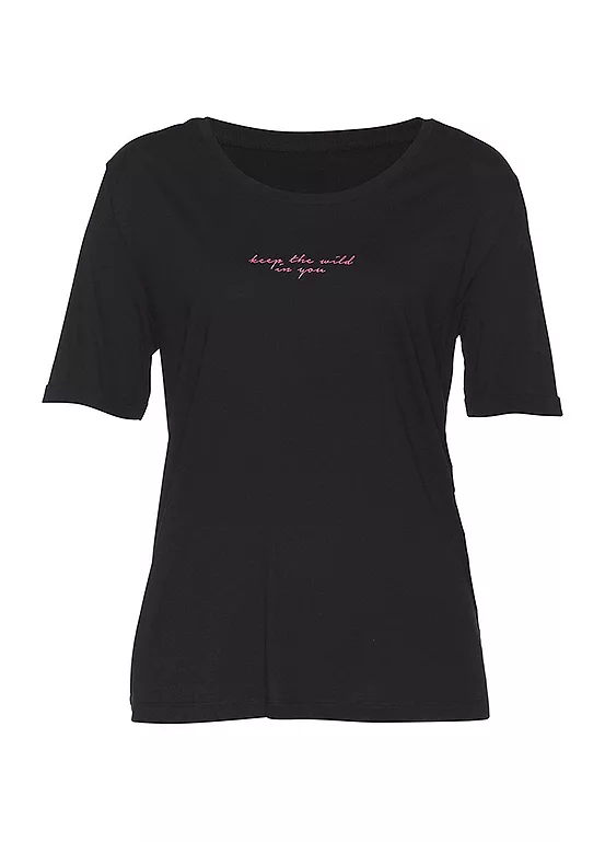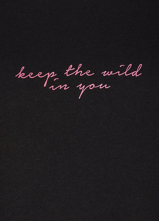 Fashionable pyjamas with a beautiful animal print. Made from soft single jersey blend that feels great against the skin. Short-sleeve shirt with a round neckline and dropped shoulders. Long trousers with an elasticated drawstring waistband and side pockets.