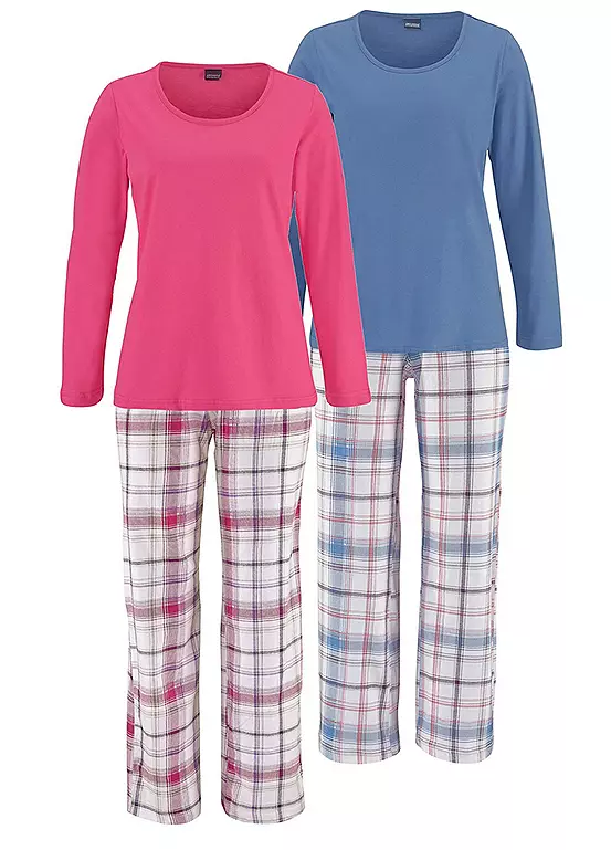 In a pack of two, you wonโt be short and cute yet practical PJs. The long sleeved top with a round neckline is perfectly paired with long, checked trousers with an elasticated waistband. The soft single jersey knit will keep you snug from bedtime to get-up-and-go time.