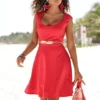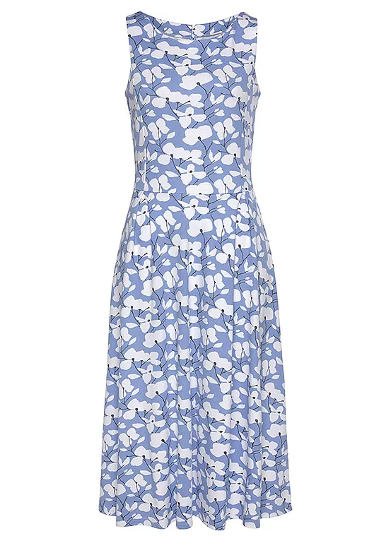 Charming midi dress with all-over print. Features crew neck, back with neck slit and button. With figure-flattering dividing seams and a wonderful summer look. Skirt section exhibited. Round neck. Sleeveless.