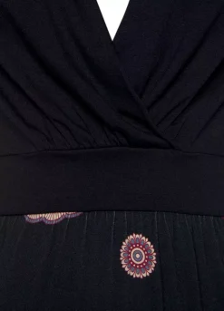 This beach dress will take care of your summer look. Thanks to the print on the skirt this dress is particularly eye-catching. Short cap sleeves, v-neckline and ruffles on the top conjure up a beautiful feminine silhouette. With its playful cut-out detail, the back also attracts attention and will make you stand out from the crowd.