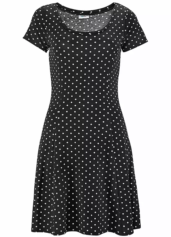 Stand out in this classic retro style short sleeved dress. In a stretched viscose fabric it features a round neckline and a slightly flared skirt. A perfect choice for slipping on after a day on the beach and heading to the beach bar.