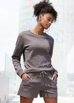 High-quality sweat shorts with a small embroidered logo on the front and a ribbed, elastic drawstring waistband. Finished with side pockets and a slightly flared cut. Embroidered logo. Side pockets. Soft sweat fabric with a high cotton content.