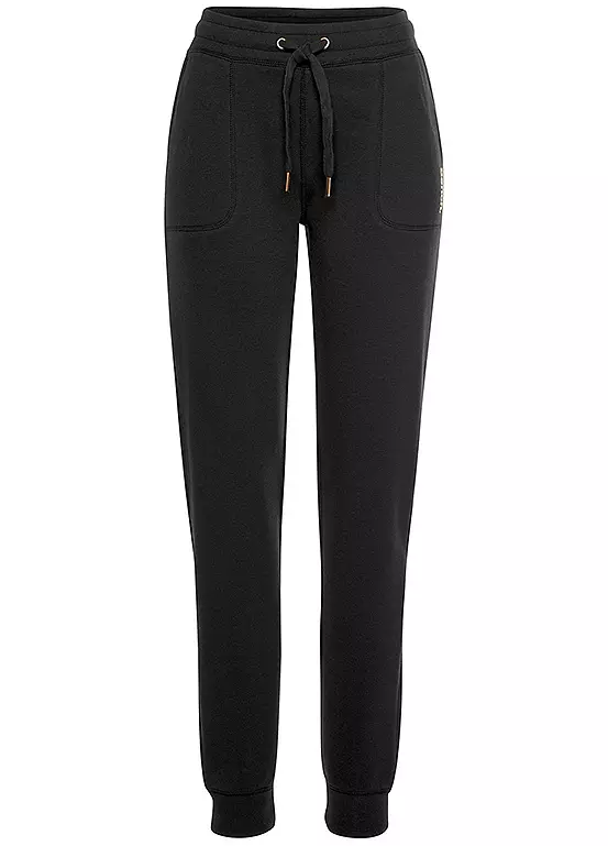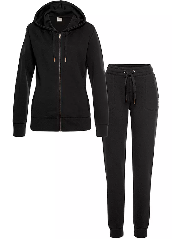 A cosy leisure suit consisting of a hooded sweat jacket with pockets and matching sweat pants with elastic cuffs for plenty of comfort. In a soft cotton blend, complete with logo detail in a stylish metallic effect. Pants with elastic cuffs.
