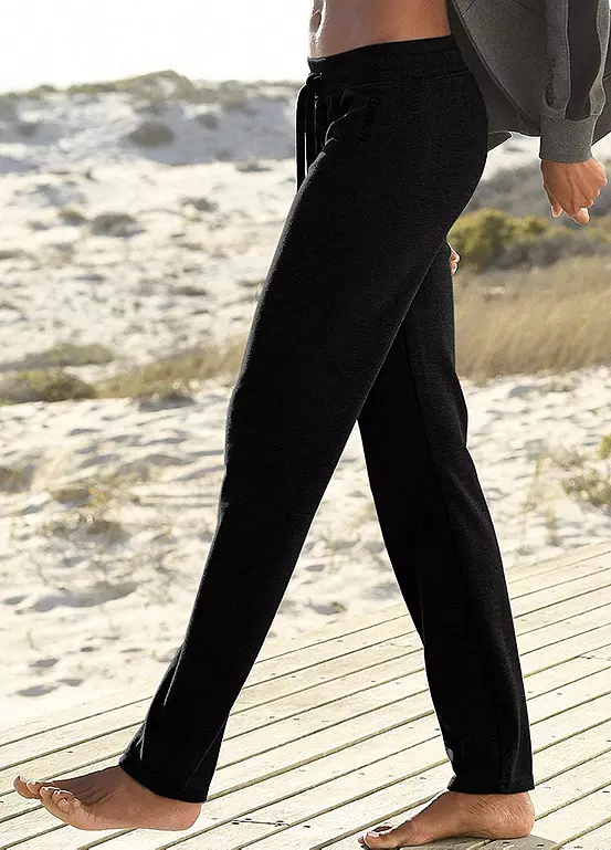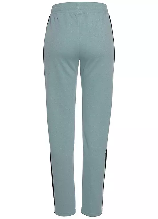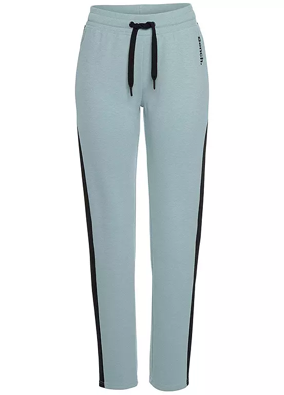 Sporty sweat pants featuring colour contrasting insert stripes, as well as a drawstring on the wide waistband and logo lettering at the side.