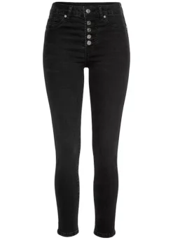 These fashionable jeans are in a high-waist design. Made with stretch content, they are incredibly comfortable and feature faux pockets at the front, as well as two back pockets where you can easily store your mobile phone.