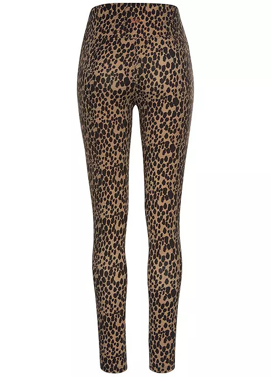 Make a statement with these jersey leggings. Designed in a funky leopard print, the soft cotton material with stretch content makes them comfortable, whilst a wide, elastic waistband provides support.