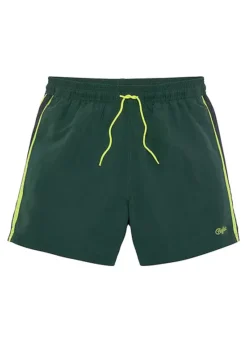 The swimming shorts from Buffalo present you with sporty swimwear in its most beautiful form. Their plain-coloured design is skilfully loosened up by contrasting details and label prints. You can adjust the fit individually using the elastic drawstring waistband. The inner slip with a small pocket provides additional comfort and a practical detail. On top of that, the soft microfibre scores a pleasant feeling on your skin. The overall package of the swimming trunks is rounded off by two side pockets. Contrasting details. Side pockets. Shell: 50% Polyester, 50% Polyester Rebornโข. Inner slip: 100% Polyester.