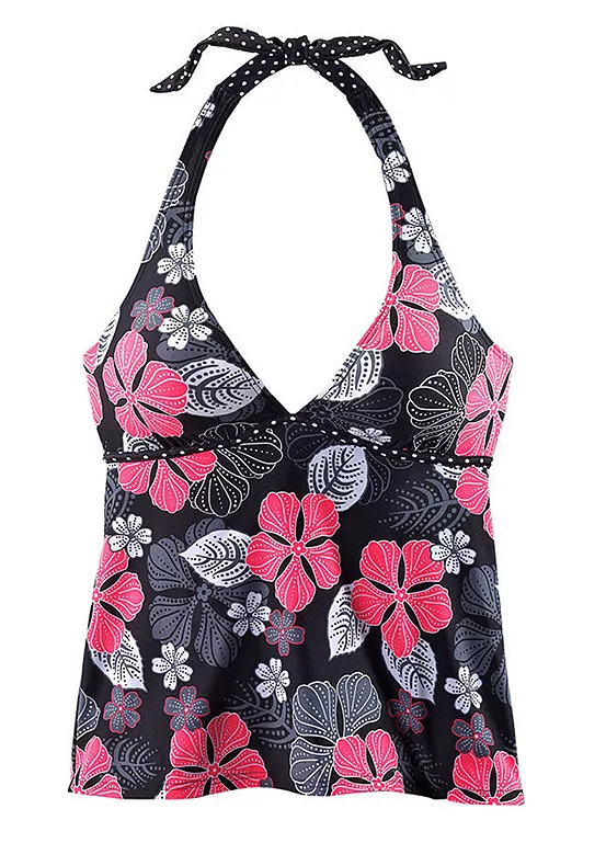 Allow colour to seep through the gorgeous base in the formal of flawless flowers. The stand-out v-neck is perfect for showing a little flesh whilst keeping modest. This particular top style comes with integrated soft cups, to add a little more shape, and fastens at the neck. Please note: This top is suitable for a C cup.
