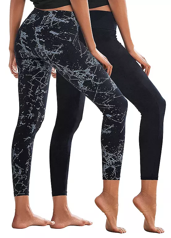 Beautiful leggings in a practical 2-pack. Made of soft material with a high percentage of stretch. A wide, stretch waistband keeps them in place. The double pack contains a plain-coloured and a printed design.