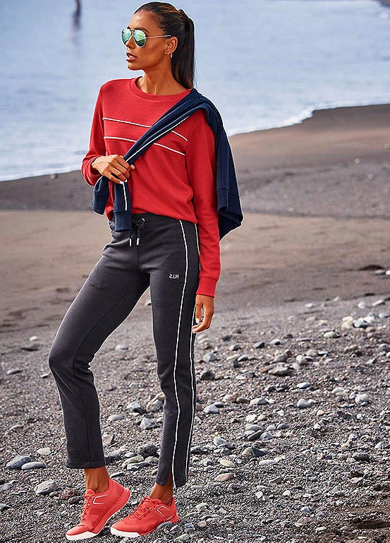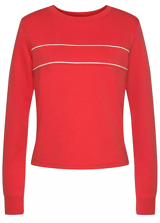 A great holiday sweatshirt featuring a round neckline, long sleeves and piping across the chest. Ribbed cuffs & waistband Small logo embroidery