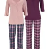 The vertical all-over stripe pattern of these pyjamas with edging in contrasting colours and a button placket ensure a trendy look and flatter your figure. The high-quality cotton promises maximum comfort. An elasticated waistband with a decorative bow offers support without pressing uncomfortably. In order to stow important little things, discreet breast and trouser pockets adorn the pyjamas.Keep away from fire.