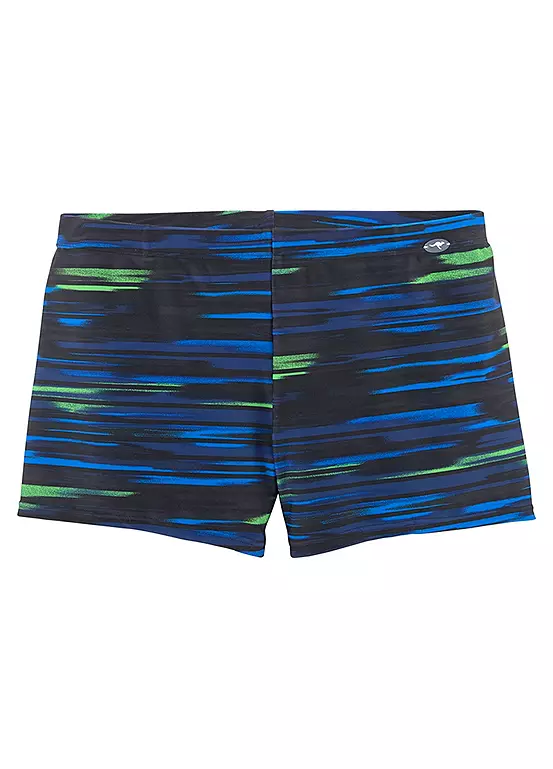 A stylish pair of swimming shorts in an on-trend print design. These tight fitting shorts have an inner cord for a more secure fit.