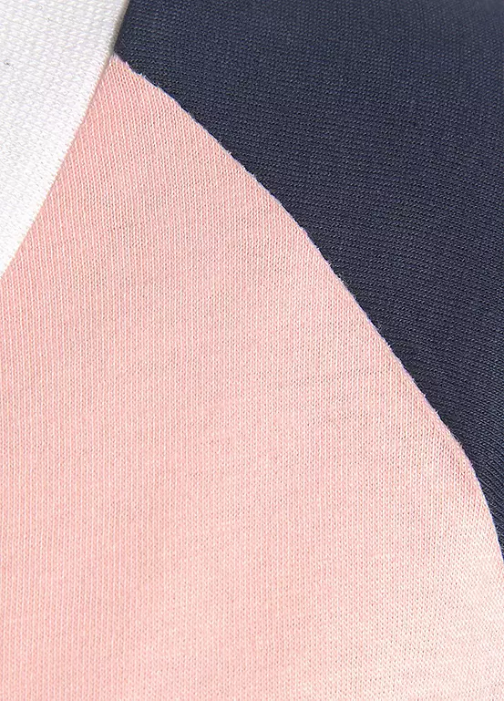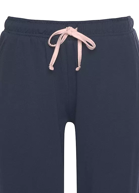 Varsity style pyjamas featuring a long sleeve top with contrasting raglan sleeves, contrasting V-neckline and sleeve cuffs. The matching long pants complete the look with contrasting finishes on the elastic drawstring waistband and cuffs on the leg ends. Logo print. Single jersey fabric made from cotton.