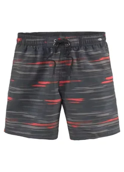 Fashionable swim shorts in a print design. Featuring an elasticated waistband with outer cord, side pockets and inner lining with small inner pocket. Inside leg approx. 44 cm (17 in).