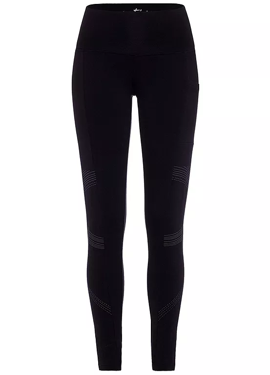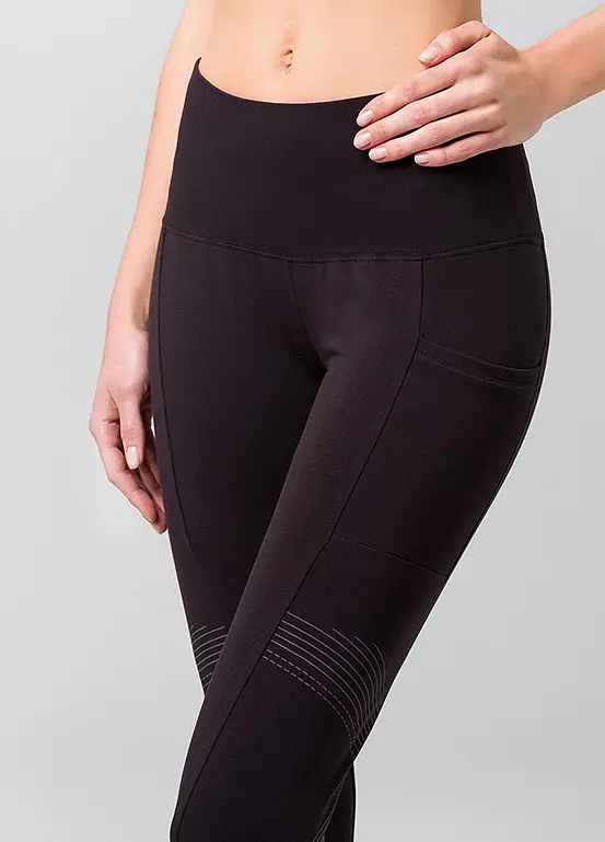 A stylish pair of leggings that are ideal for the gym or lounging around the home. Their high waistband has a visually slimming effect that creates a flattering silhouette. A striped print which extends down the legs, gives them a distinctive look, and a handy pocket completes their design.