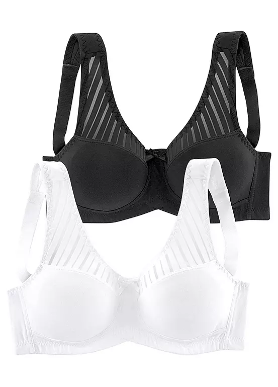 Classic styling is blessed on the bras in this pack of two ensemble. Non-wired, the seamless pre-formed cups with a striped design on the upper cups are soft whilst the padded straps provide flawless comfort.
