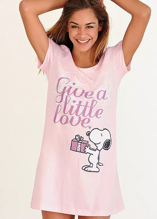 Playful and comfortable shirt nighty with a wide rounded neckline and large Snoopy print on front. In a soft single Jersey fabric.