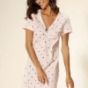 This short nightshirt is the perfect choice for sweet dreams. It features an eye-catching, cheeky Snoopy print on the front, along with a contrast crew neck with small decorative bow at the front, as well as romantic baby lock seams on the short sleeves and hem. Its figure-skimming fit flatters the figure, whilst its soft single jersey fabric guarantees a supremely comfortable wear. Add another favourite piece to your nightwear essentials with this nightshirt.