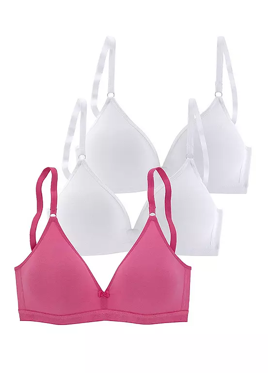 Cotton mix pack of 3 non-wired bras that offer reliable support and are comfortable to wear. Pack of 3.