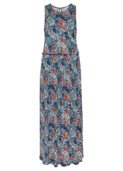 Maxi dress in a sleeveless design with button closure at the neck and a polka dot print.