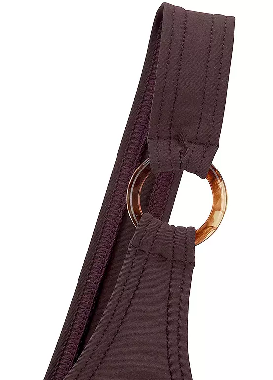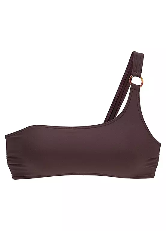 This beautiful bikini top is styled in a trendy off the shoulder look and plain-coloured design that is timeless. A decorative ring on the carrier gives the bikini top a very special touch. Integrated soft cups and a comfortable microfibre quality ensure that you simply feel good.