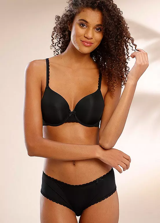A classic soft bra with decorated lace straps and seamlessly preformed cups, plus an integrated underwire for a secure hold. The straps and back closure are individually adjustable. Matching briefs from the same range are also available.