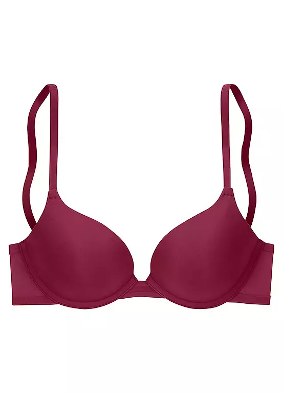 Underwired padded push up t-shirt bra with smooth cups, adjustable straps and hook and eye back fastening.