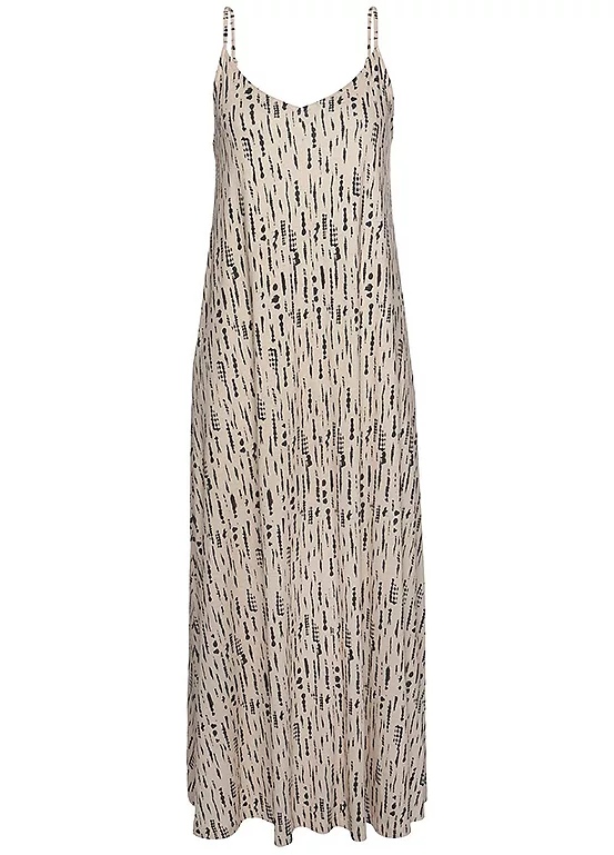 Summery maxi dress with a V-neckline and a sweet bow in the back. Featuring adjustable thin spaghetti straps. The fit is slightly flared. The fit is slightly flared. V-neck. Adjustable spaghetti straps.
