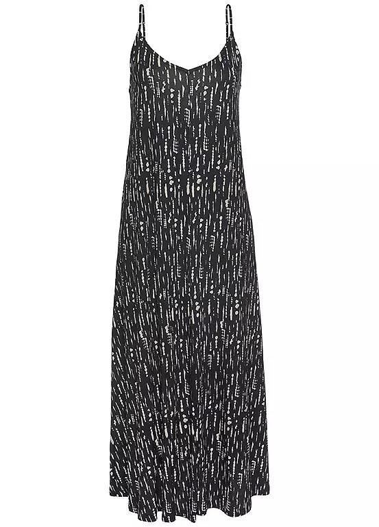 Airy maxi dress with subtle V-neckline and pretty bow detail at the back. The dress is summery with thin spaghetti straps that are adjustable. In a slightly figure-hugging fit, this dress is perfect for beach holidays and warm days. V-neckline. Spaghetti straps.