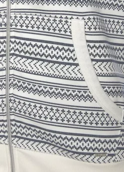On cosy nights in or on cooler days out, this hooded sweat jumper is your warming companion. The upper material impresses with its pleasantly soft feel. In addition, the cosy hooded sweat jacket can convince with a practical kangaroo pocket, a casual fit and stretch rib cuffs. It is closed with a zip. Thanks to the Norwegian pattern, the sweat jacket will quickly become a soft favourite.