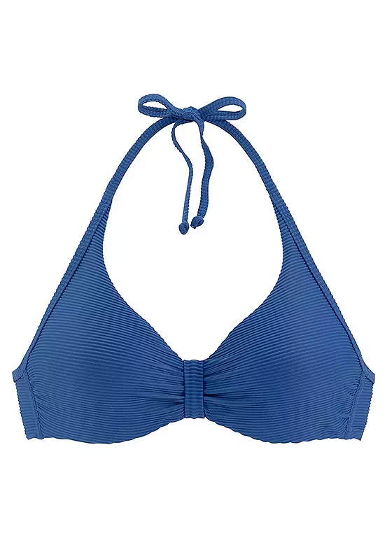 Fashionable mix and match halterneck bikini top with supportive side rods for an incredible cleavage.