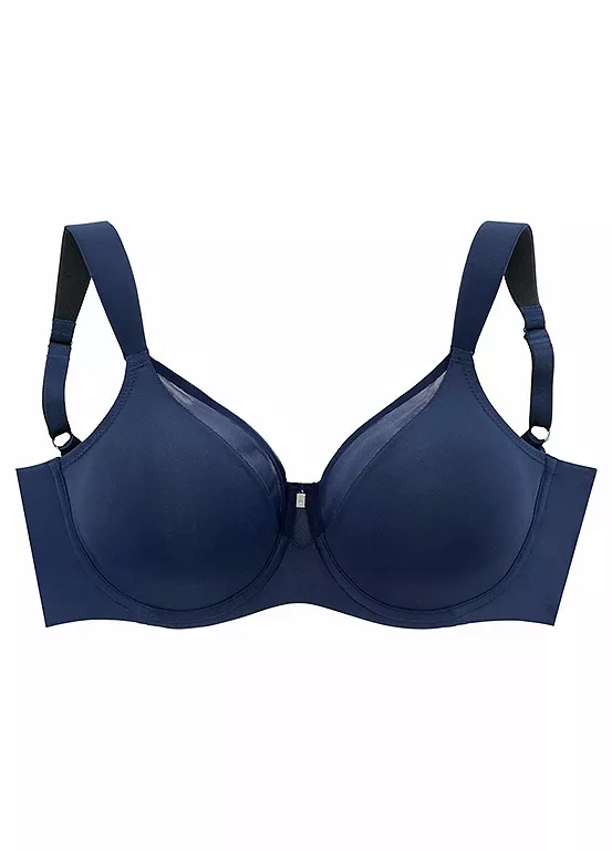 A classic, functional minimiser bra featuring soft, flat straps that relieve the shoulders, and with comfortable underwire for an optimum fit. It also comes with a decorative net insert above the cups, plus adjustable straps and back closure.