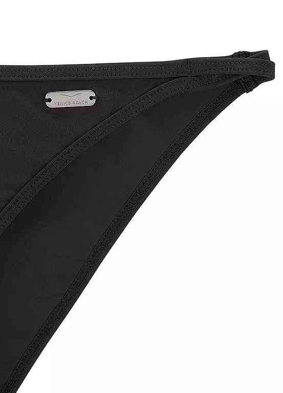 Your styling partner for the beach and bathing lake: the simple bikini bottoms from Venice Beach. You can easily combine their plain-coloured design with a small metal emblem on the front. For example with patterned bustiers or tops in a contrasting colour. The tight cut with narrow crossed side bands is totally trendy.