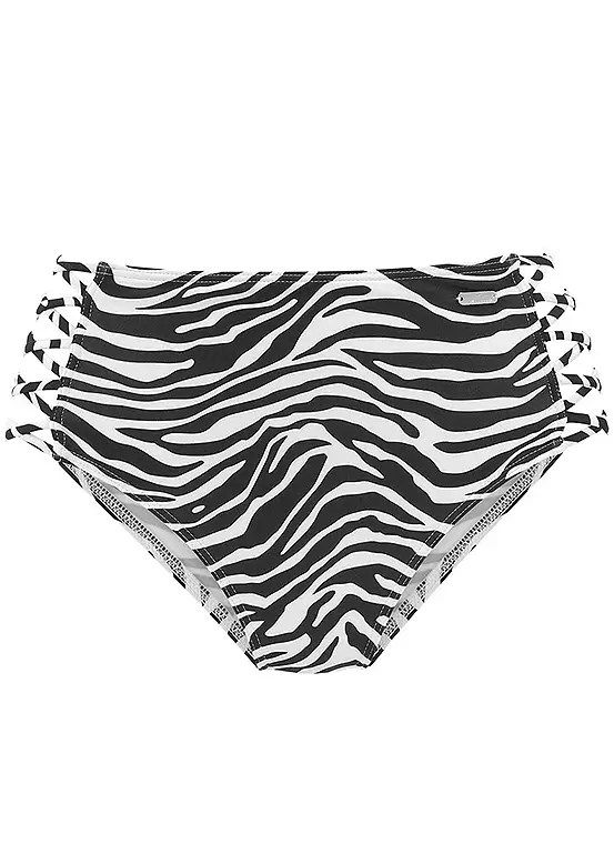 Fashionable high-waist bikini bottoms from Venice Beach. Trendy animal print. Crossed straps on the sides. Soft microfiber. Animal print. Machine washable. Outer: 85% Polyamide, 15% Elastane Lining: 100% Polyester.