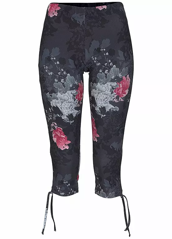 In a sporty cropped length, these fabulous floral printed leggings are the perfect addition for your beachwear collection. Complete with lacing at the side for gather detailing.