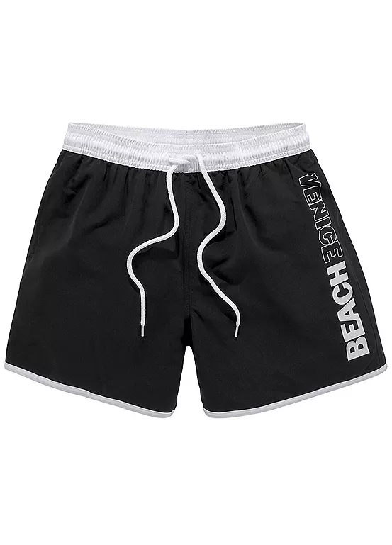 Soft microfibre swim shorts in trendy solid colours. They feature an elasticated waistband with a drawstring, side pocket and a back pocket with a Velcro fastening. Contrast waistband. Side pockets. Machine washable. Outer: 50% Polyester, 50% Polyester Rebornâ„¢. Inner slip: 100% Polyester.