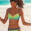 Patterned underwired bandeau top in a tropical print with padded cups and detachable straps. Printed – each piece is unique. Padded cups. Soft microfibre with recycled polyamide.