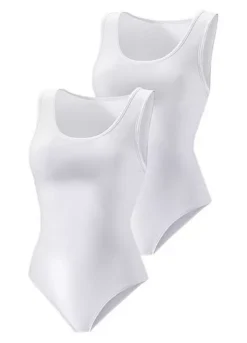 If you love a tucked-in vest but dislike how they ride up and leave under-clothing lines, then weโve got just the thing for you! In a pack of two, these all-in one body vests will be a fabulous addition to your basic tees. Theyโve been made from a soft stretched cotton fabric with a round neckline, short sleeves, plus and hook and latch crotch closure. Weโll take one in every colour, please!