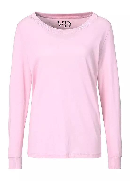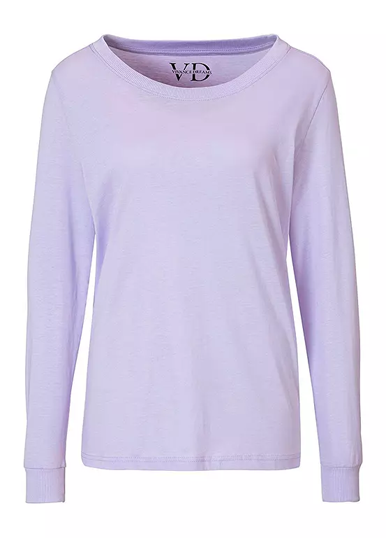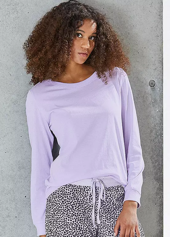 Long-sleeved, easy-to-mix and match pyjama top. Wide round neckline with branding on the inside in a straight, figure-flattering cut. Stretch cuffs at the sleeve ends all in soft cotton material.