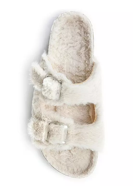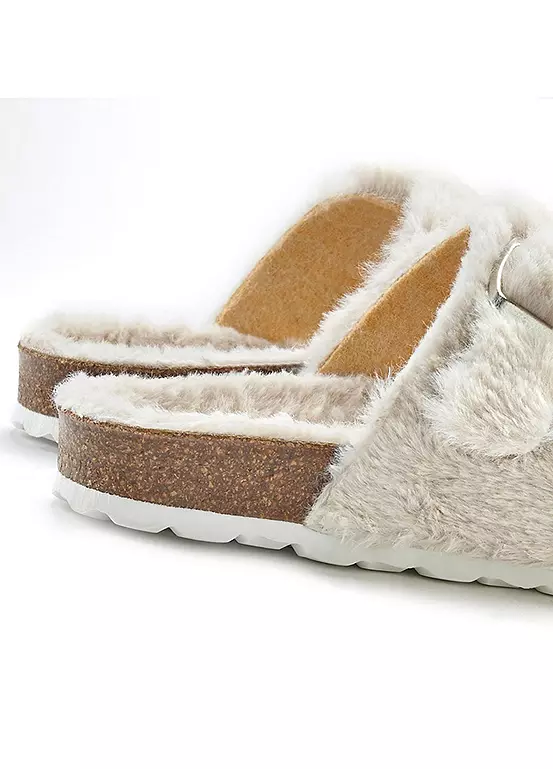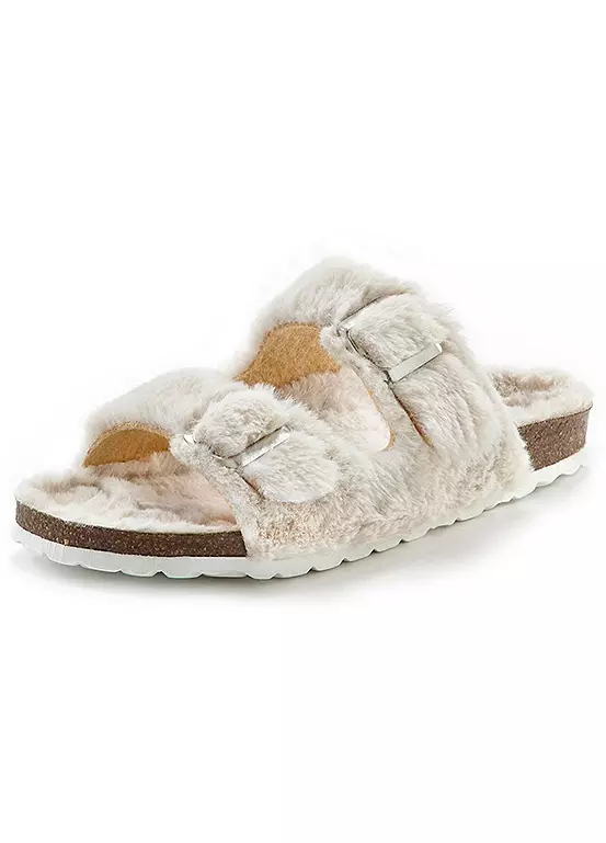 Cuddly mule slippers with faux fur and cork footbed by Vivance. Made in Spain. With a comfortable cork footbed. Upper: Synthetic, Lining: Synthetic, Insole: Synthetic, Sole: Synthetic.