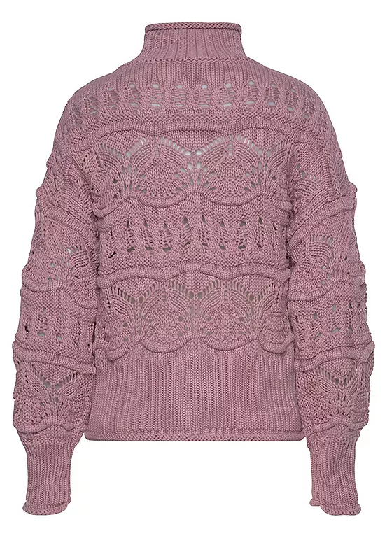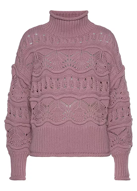 Turtleneck sweater in a striking knit pattern featuring wide ribbed cuffs with rolled edges. In a loose, oversized fit. Perfect for leisurewear Soft line quality.