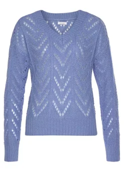 A stylish jumper by Vivance with dropped shoulders and a slightly transparent knitted pattern. Cut short, it features a ribbed hem and cuffs.