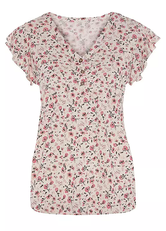 Modern and playful pack of 2 tops. This top conjures up a romantic look with delicate cap sleeves, horn-look buttons, an elastic waistband and a slightly flared cut to ensure a loose and comfortable fit.