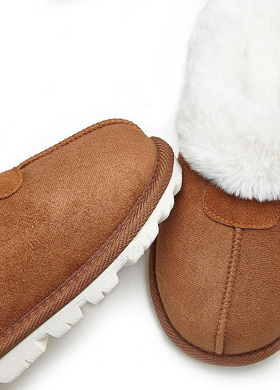 Plush slippers made with cosy faux fur, along with a soft and warming lining. Synthetic outsole.