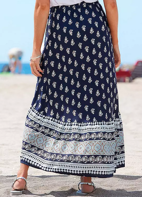 A wrap maxi skirt by Vivance in soft flowing viscose featuring playful flounce at the hem and a tie at the waist. The waistband is smooth at the front and elasticated at the back.