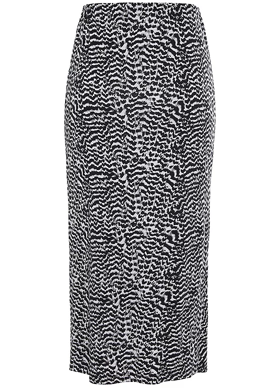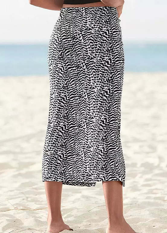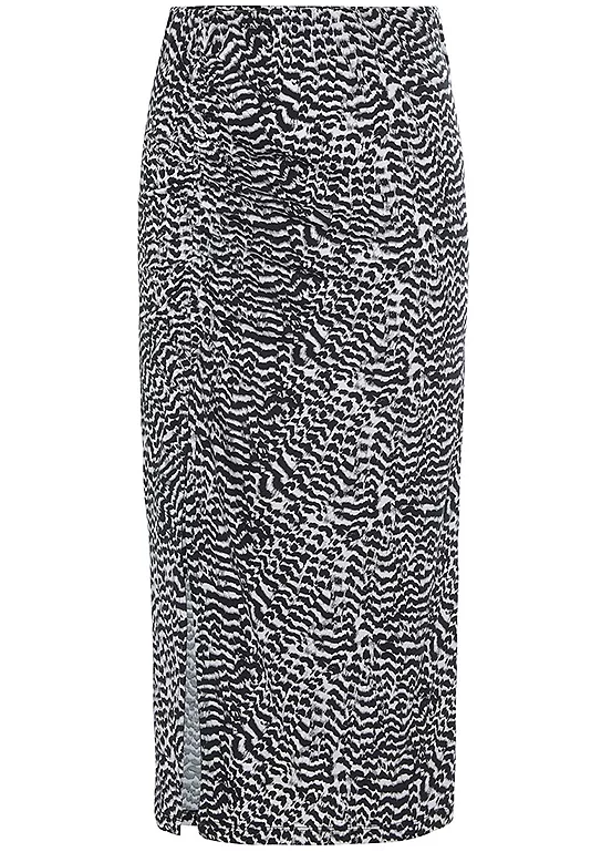 A real โit-pieceโ for trendy styles, this midi skirt by Vivance features an eye-catching print, plus side ruffles and a high hem slit, which subtly reveals the leg. The jersey skirt is not only praiseworthy from a visual point of view. The wearability of the inner elasticated waistband and soft jersey fabric also deserves recognition. High hem slit. Elasticated waistband. Machine washable. 95% Viscose, 5% Elastane.