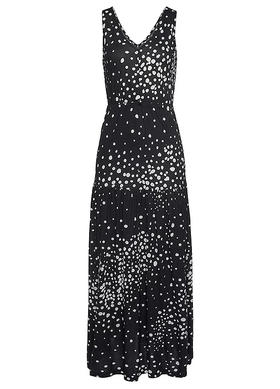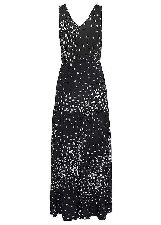 A simply gorgeous maxi dress, designed in a unique print. It features summery spaghetti straps, a stretch band on the waist and dividing seams. Wear with comfortable sandals or wedges. Stretch waist Skirt part with dividing seams Each piece is unique in an all-over print Length approx. 134 cm (52ยพ in).